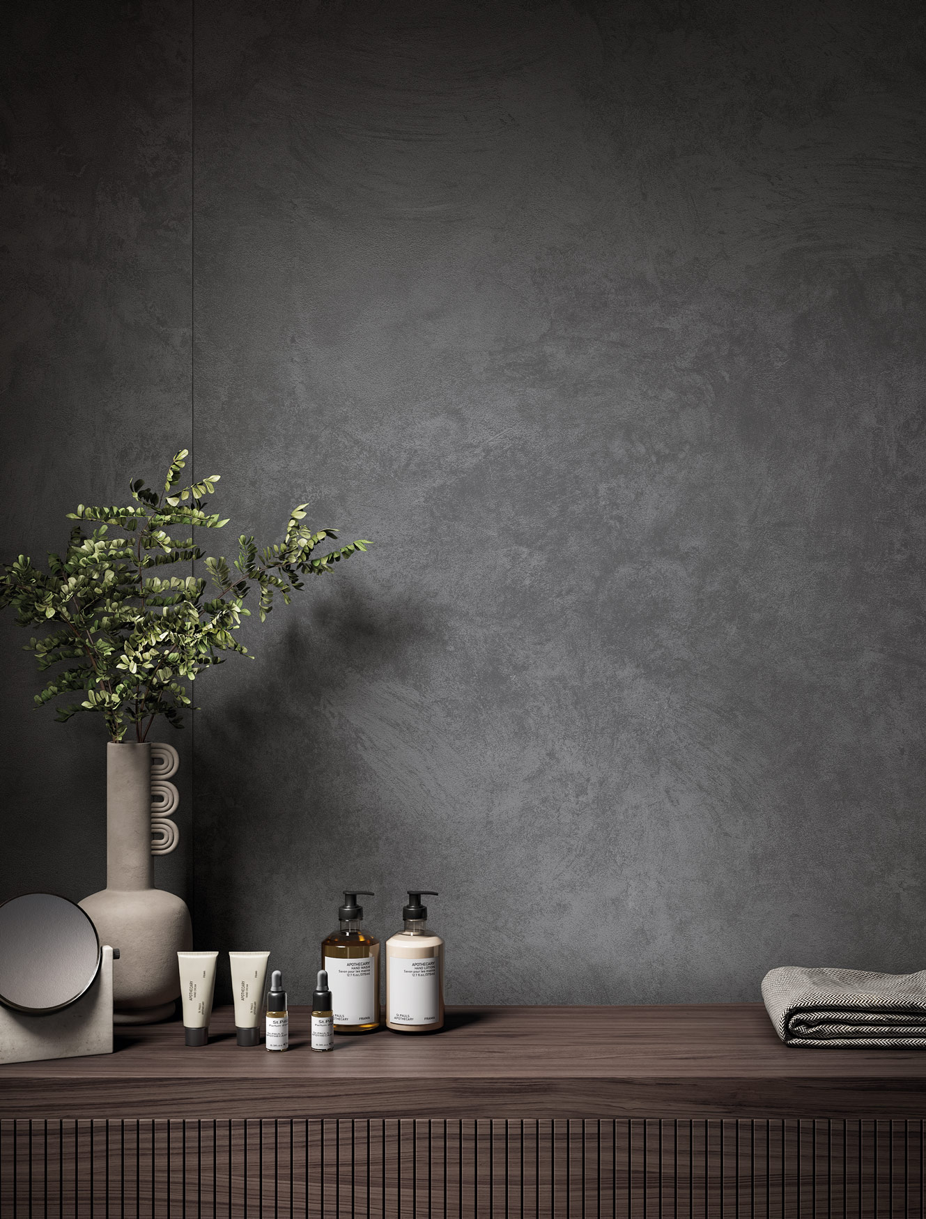 有別於石材及清水模,VIS系列以簡約的質地、醇厚的色系存在著,靜靜地將重點分享給空間中的其他妝容,