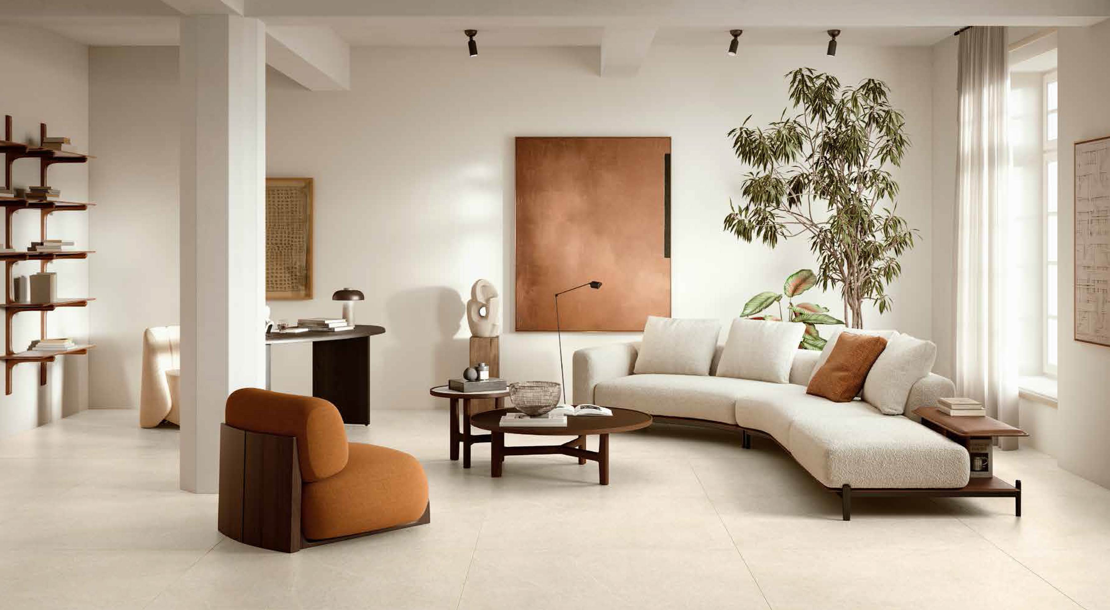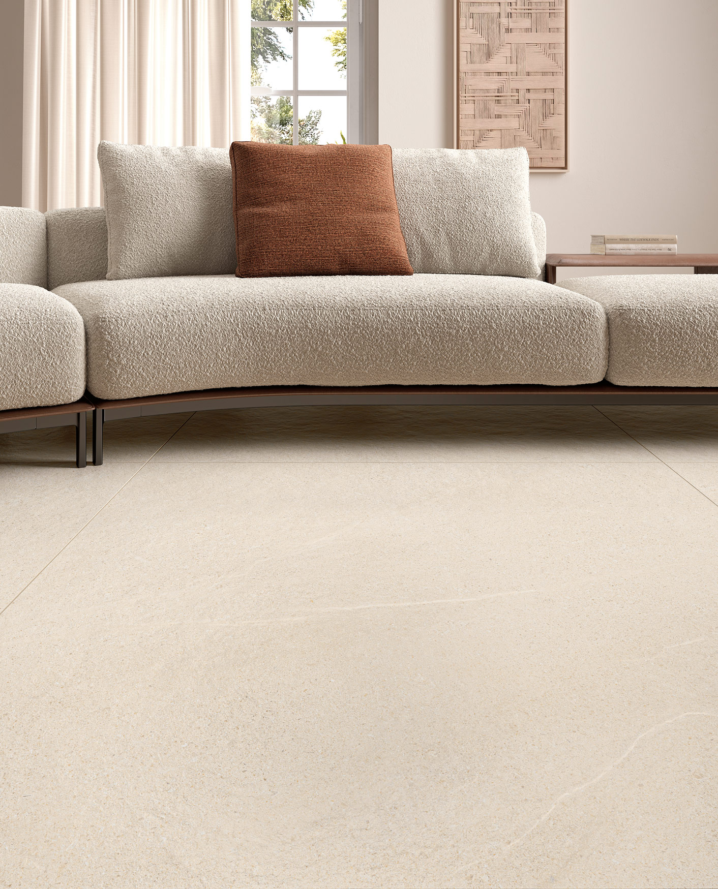 此系列瓷磚採用同色系圖案設計,白色和灰色紋理賦予其深度和精緻感。