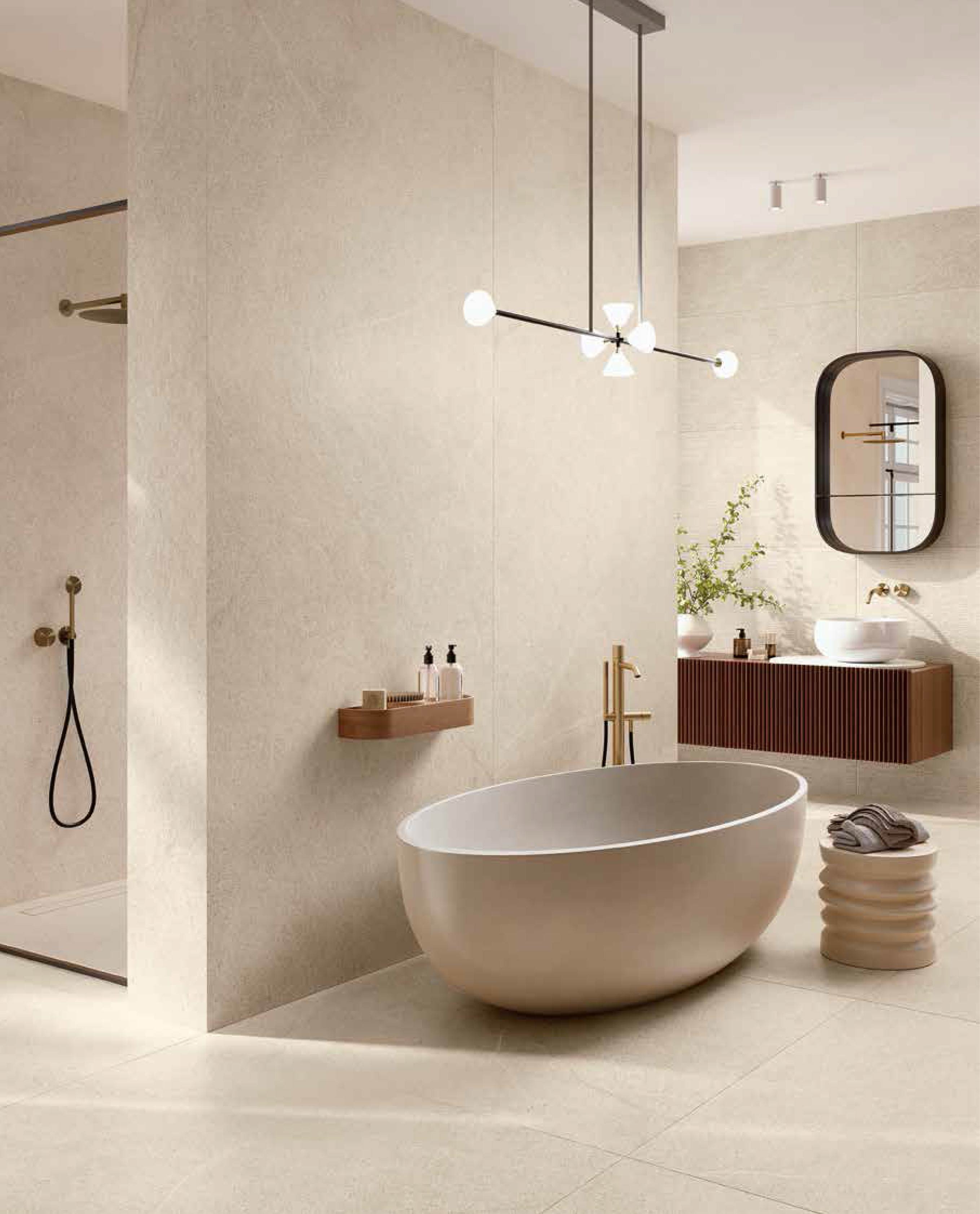 優雅精緻的 Sensoria 系列靈感源自「Bianco Siberia」石材,營造出輕盈低調的視覺效果。