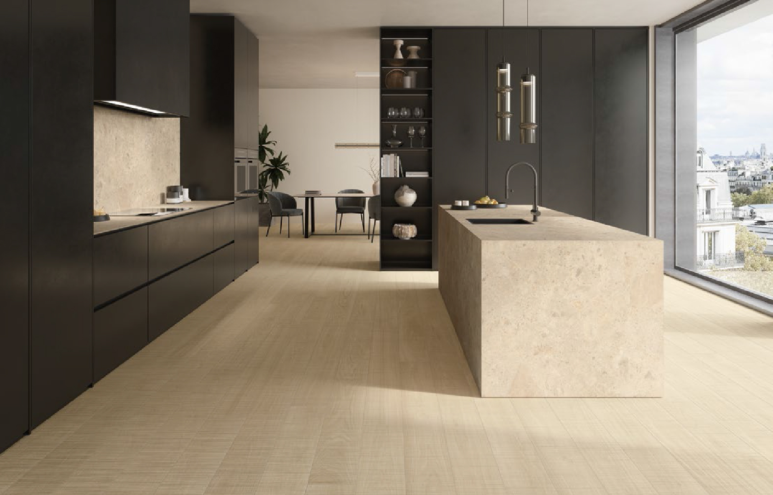 Sawn」強調的是鋸切紋理,比起一般的木紋磚,它更有觸感上的深度和層次感,適合營造極簡但具細節的現代風格。
