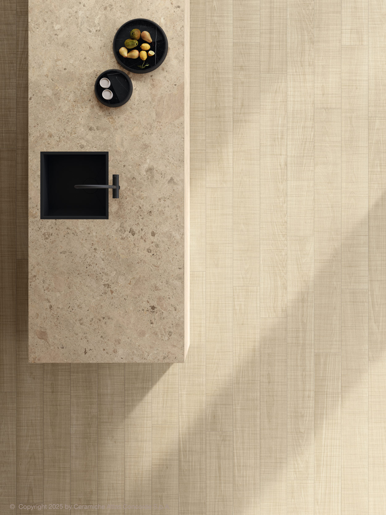 該系列是由義大利知名磁磚品牌 Atlas Concorde 推出的 Log Select 系列木紋磚中的一款特定產品。