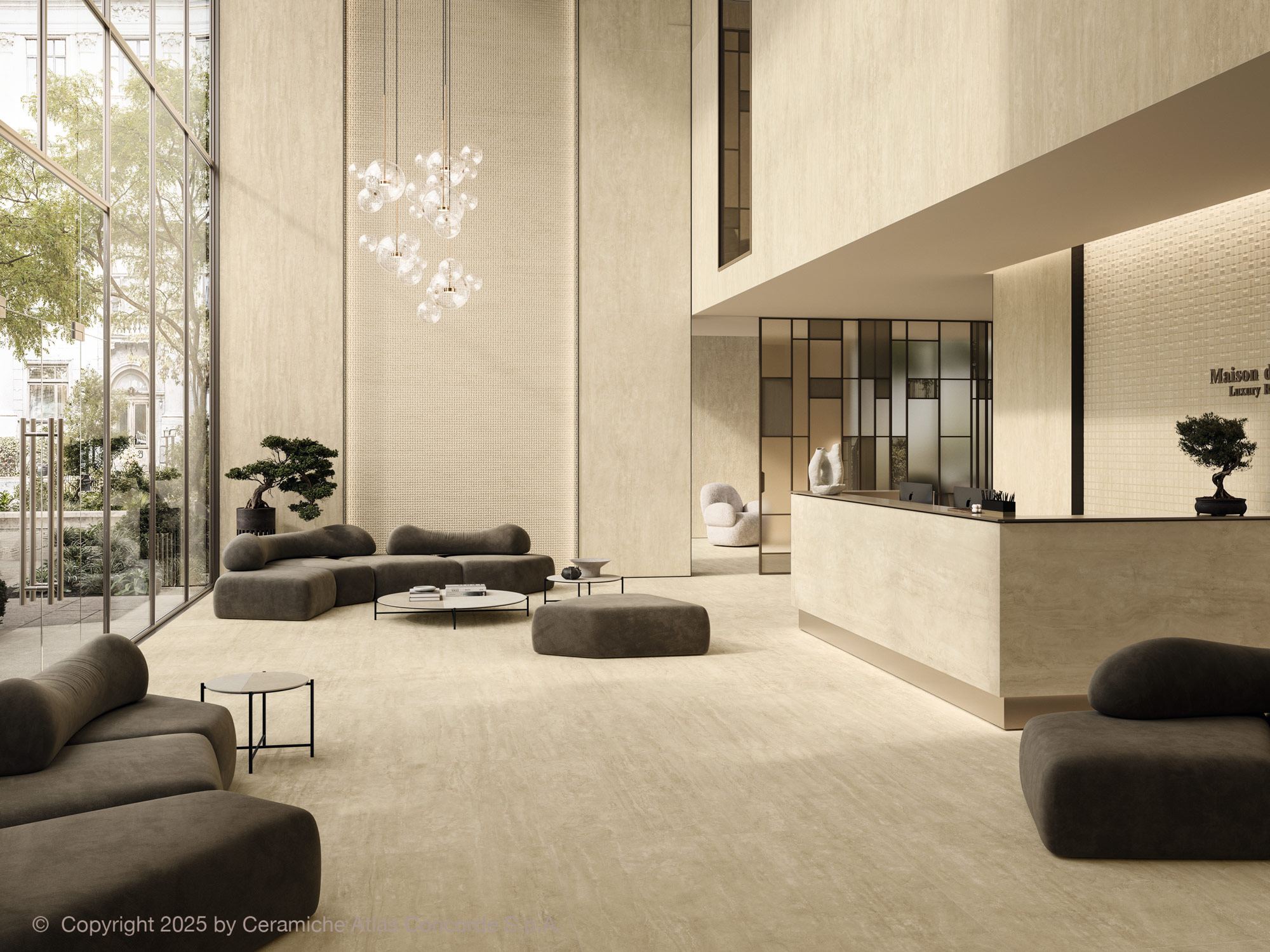 採用洞石靈感紋理,呈現溫潤、細膩且富層次的天然石風格。