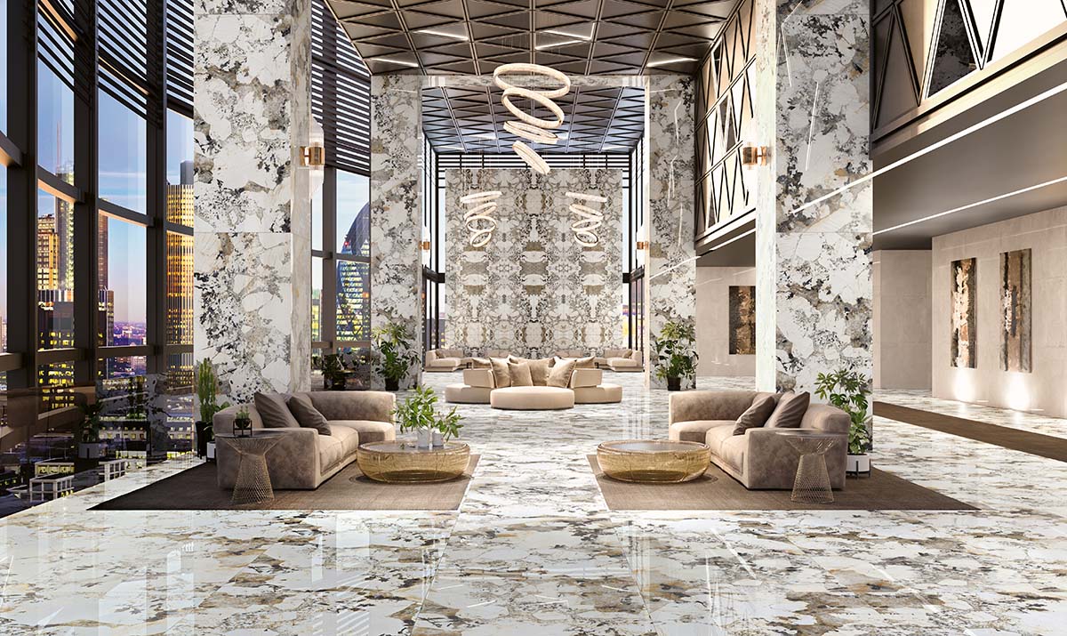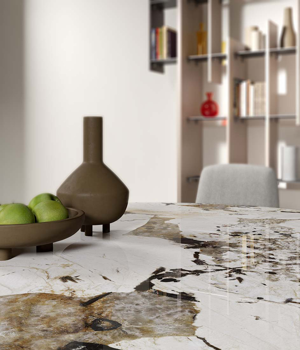 在 LCP 全拋光工藝的加持下,表面如鏡面般深邃,光影在其上流轉,隨著視角的移動,彷彿能看見石材內部的層次在呼吸。
