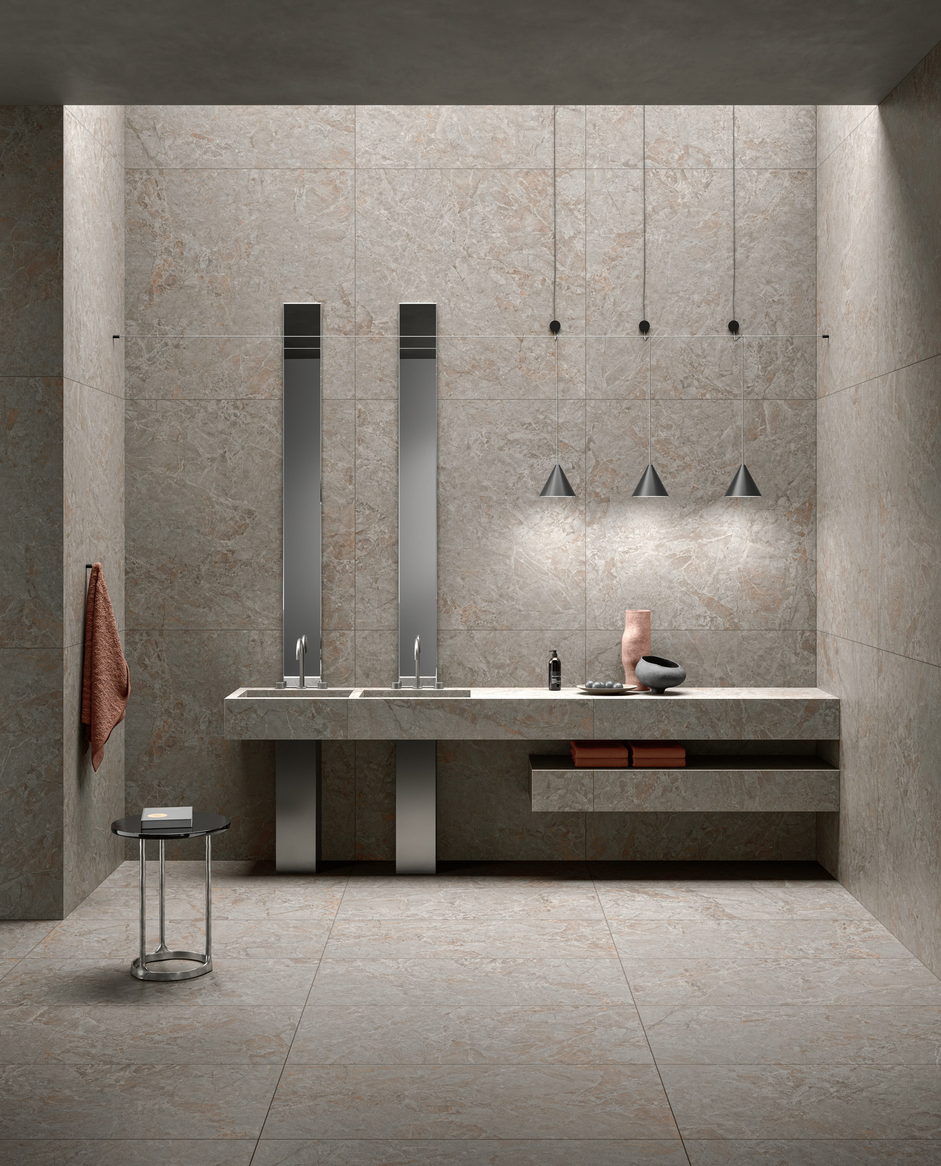 鋪貼在地面上,視線會隨著紋理自然流淌,消弭了空間的邊界感,讓空間像平原般遼闊。